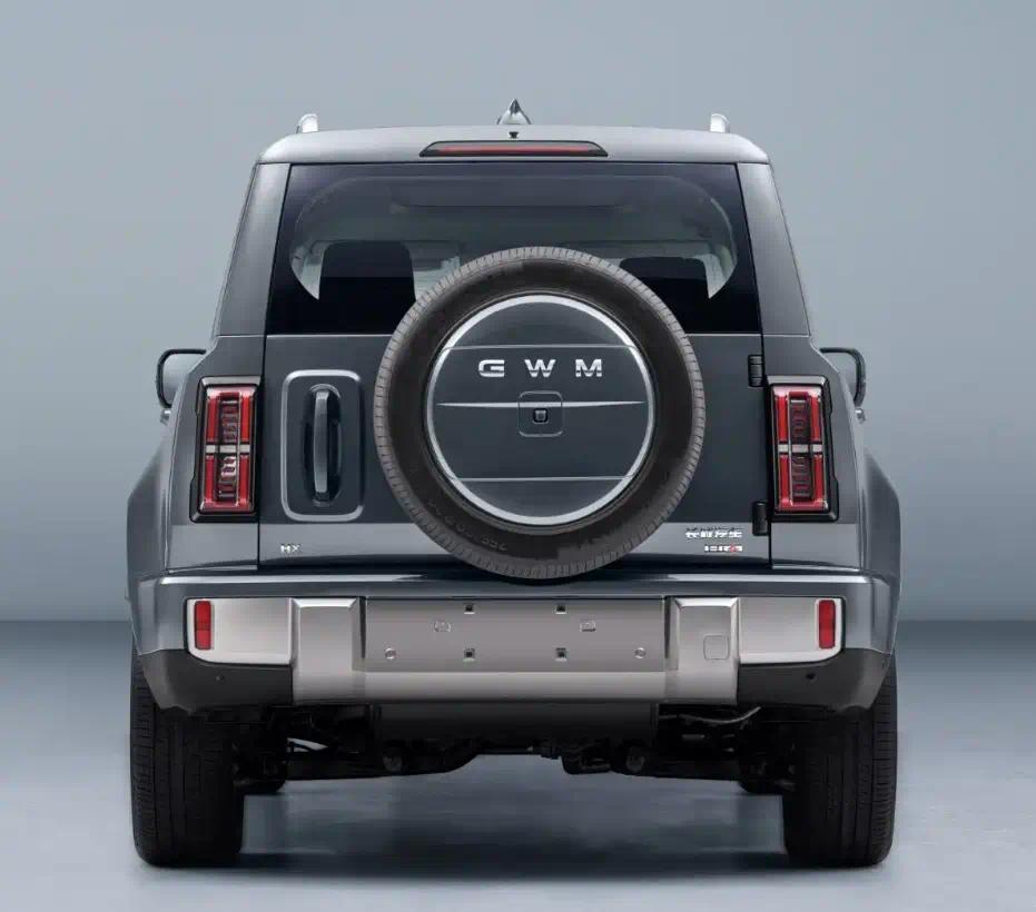 在车的尾部,我们可以看到新车采用的是非常垂直化的风格打造,它采用的是侧开的方式,车的尾灯组采用的是突出的轮廓。车的尾部还悬挂有备胎,并且底端还有厚实的保险杠。新车的长宽高分别为5138(5299)/2050/1970mm,轴距为3000mm,整车块头是非常大的。